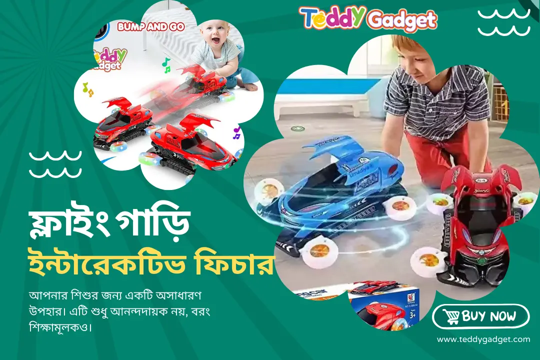• ইন্টারেকটিভ ফিচার: ফ্লাইং গাড়ির বিভিন্ন ফিচার ও কার্যক্রম শিশুর মনোযোগ আকর্ষণ করবে, যা তাদের দক্ষতা ও সমস্যা সমাধানের ক্ষমতা বৃদ্ধি করতে সাহায্য করে।