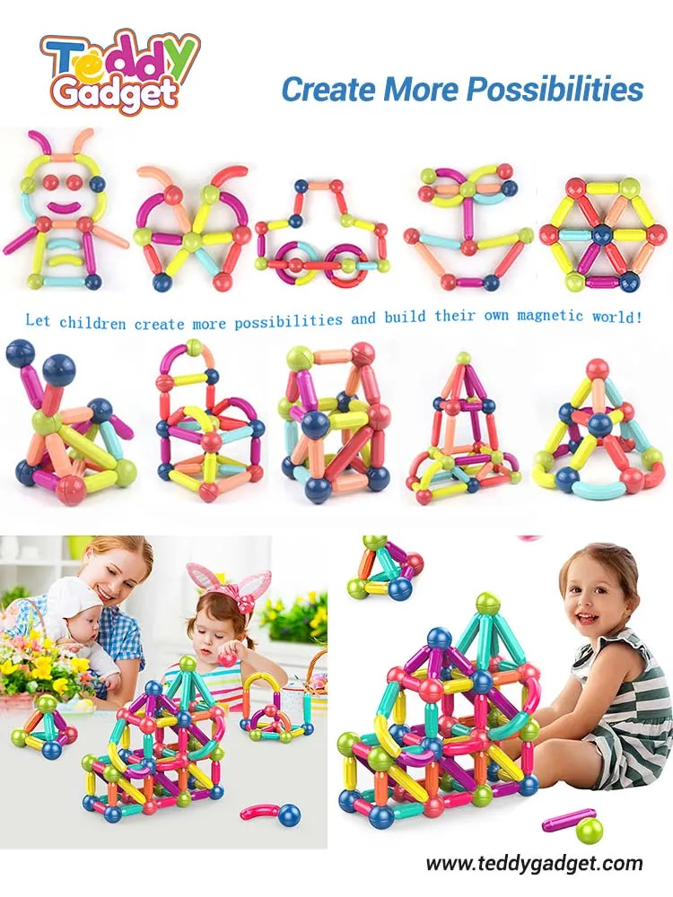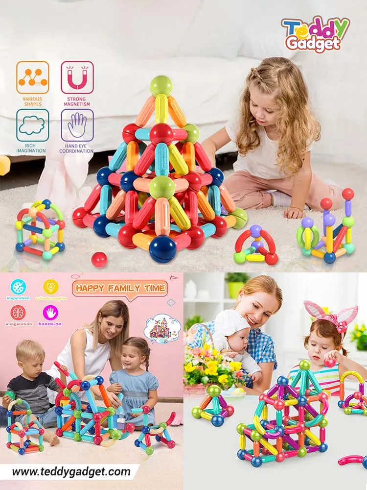 1. সৃজনশীলতা ও কল্পনাশক্তি বিকাশে সহায়ক: ম্যাগনেটিক স্টিক দিয়ে শিশুরা বিভিন্ন আকৃতি ও অবকাঠামো তৈরি করতে পারে, যা তাদের কল্পনাশক্তি ও সৃজনশীলতা বৃদ্ধিতে সাহায্য করে।